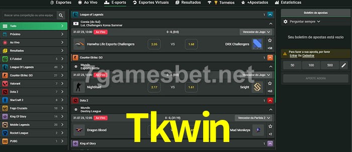 O Tkwin oferece uma grande seleção de opções de apostas em e-sports com probabilidades competitivas